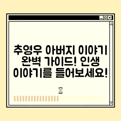 이 가이드는 추영우 아버지에 대한 특별한 이야기를 통해 그와의 추억을 되새기고 가족의 소중함을 느끼는 방법을 안내합니다.