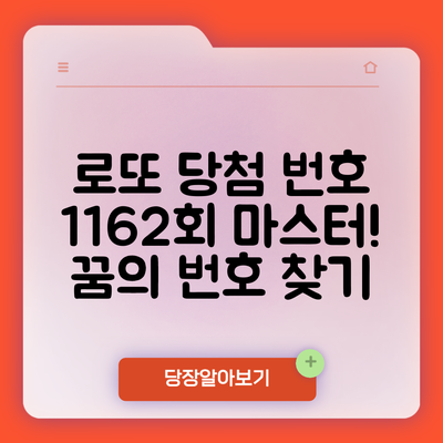 로또 번호 조합은 확률을 높이기 위한 중요한 전략입니다. 이번 가이드에서는 1162회 로또 당첨 번호를 분석하여 조합하는 방법을 설명합니다.