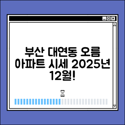 부산시 남구 대연동의 부동산 시장과 주변 아파트 단지에 대해 철저히 조사하세요. 2025년 12월 시세를 전망하기 위해 최근 시세 변동과 주거 환경을 분석하는 것이 중요합니다.