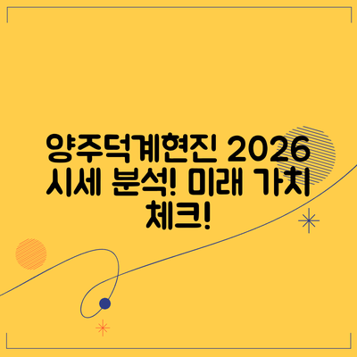 향후 경기도 양주시 덕계동의 양주덕계현진에버빌2단지 아파트 시세는 지속적인 상승세를 보일 것으로 예상됩니다. 특히, 2026년 1월 기준으로 아파트 매매가는 약 2억 5,000만 원에서 3억 원 사이를 형성할 것으로 분석되고 있습니다. 이러한 추세는 인근 개발 계획과 교육환경 개선 등이 주요 요인으로 작용할 것입니다.