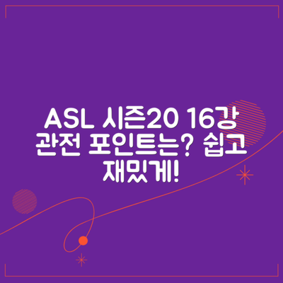 ASL 시즌20 16강, 누구나 쉽게 즐길 수 있는 관전 포인트
